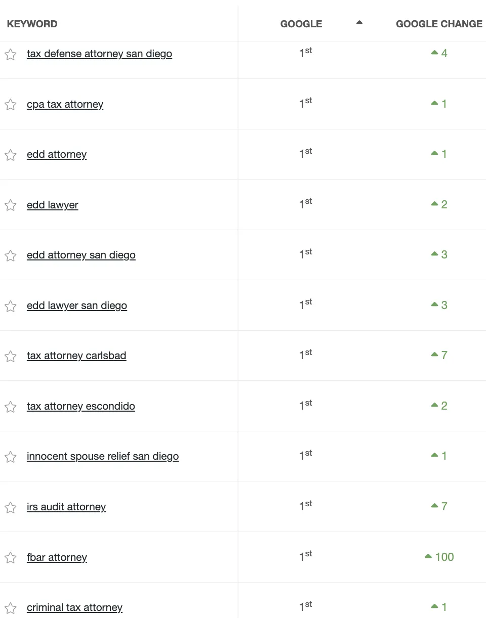 Winning local SEO isn’t just about keywords—it’s about positioning. By carefully articulating what makes a firm different, proving it with case studies, and reinforcing authority with the right links, we helped this tax attorney dominate their local market.
